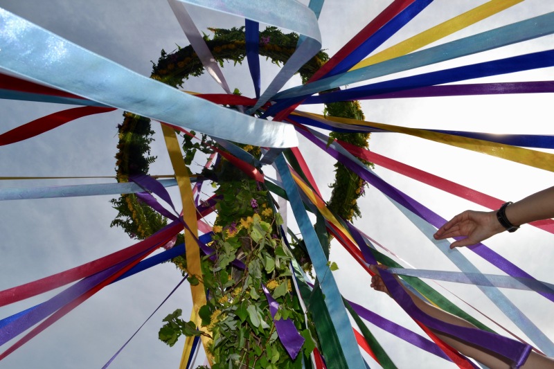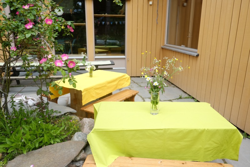 Etter maten samles vi igjen, til sang, taler og avslutning, før 1. klasse rir ut av barnehagen på kjepphestene de har laget selv. Og så ønskes alle en god sommer!